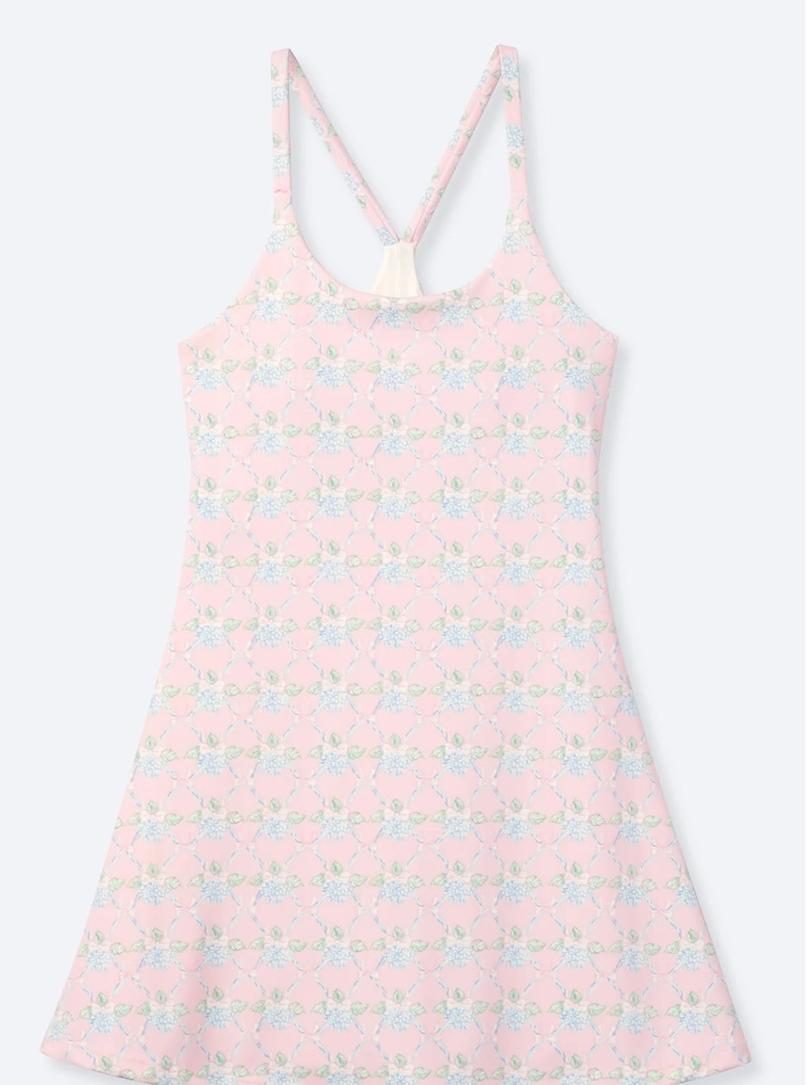 The Ribboned Dreams Athleisure Dress is a fairytale in motion — soft, feminine, and made to move with you. Featuring an allover pastel pink print adorned with delicate ribbons and blooming hydrangeas, this dress blends elegance with everyday function.