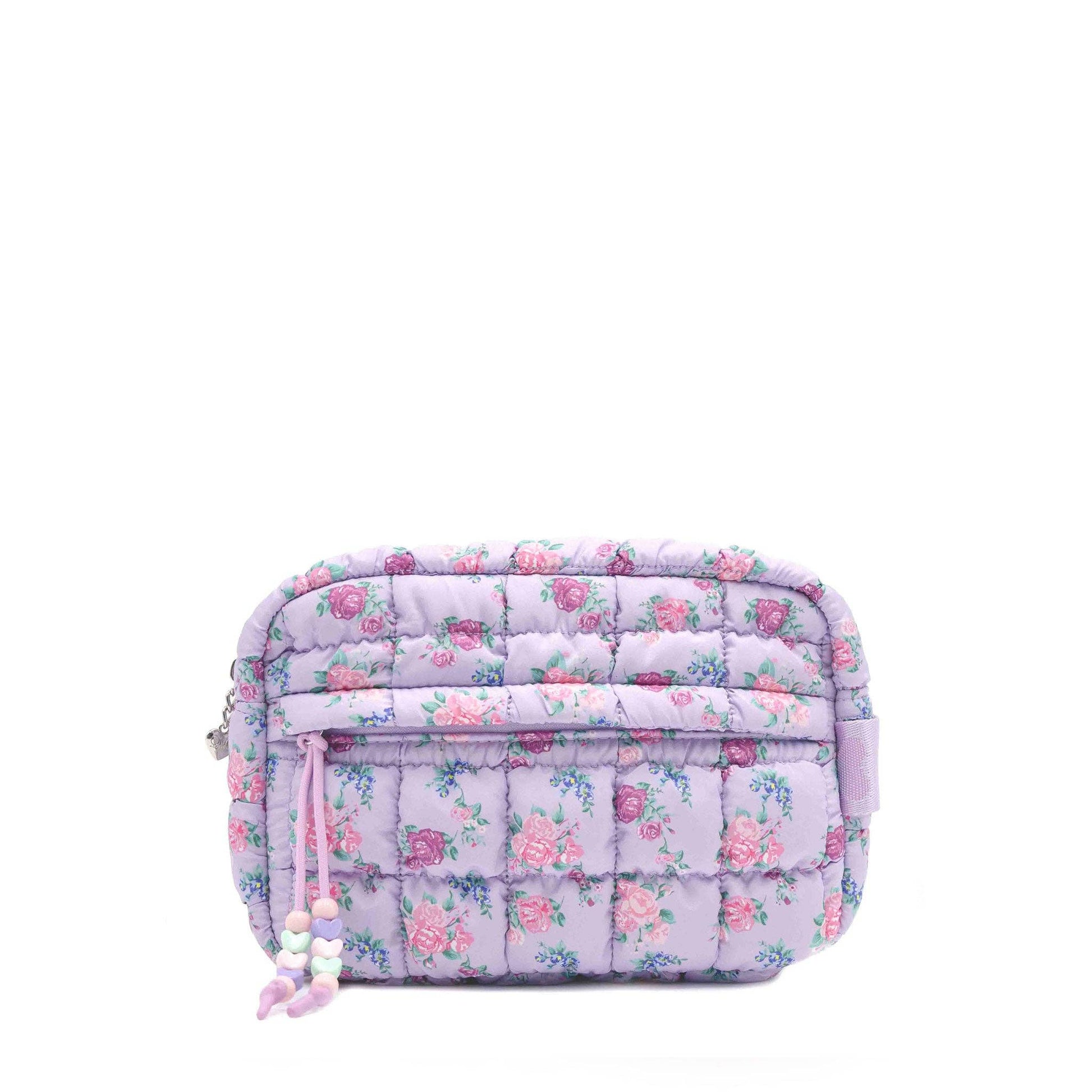Flower Power! Our classic scrunch pouch just got a girly new upgrade! This quilted pink floral printed pouch is a must-have for your mini's GRWM routine. With a zipper closure front pocket for extra storage, it's the packing essential every girly girl needs.