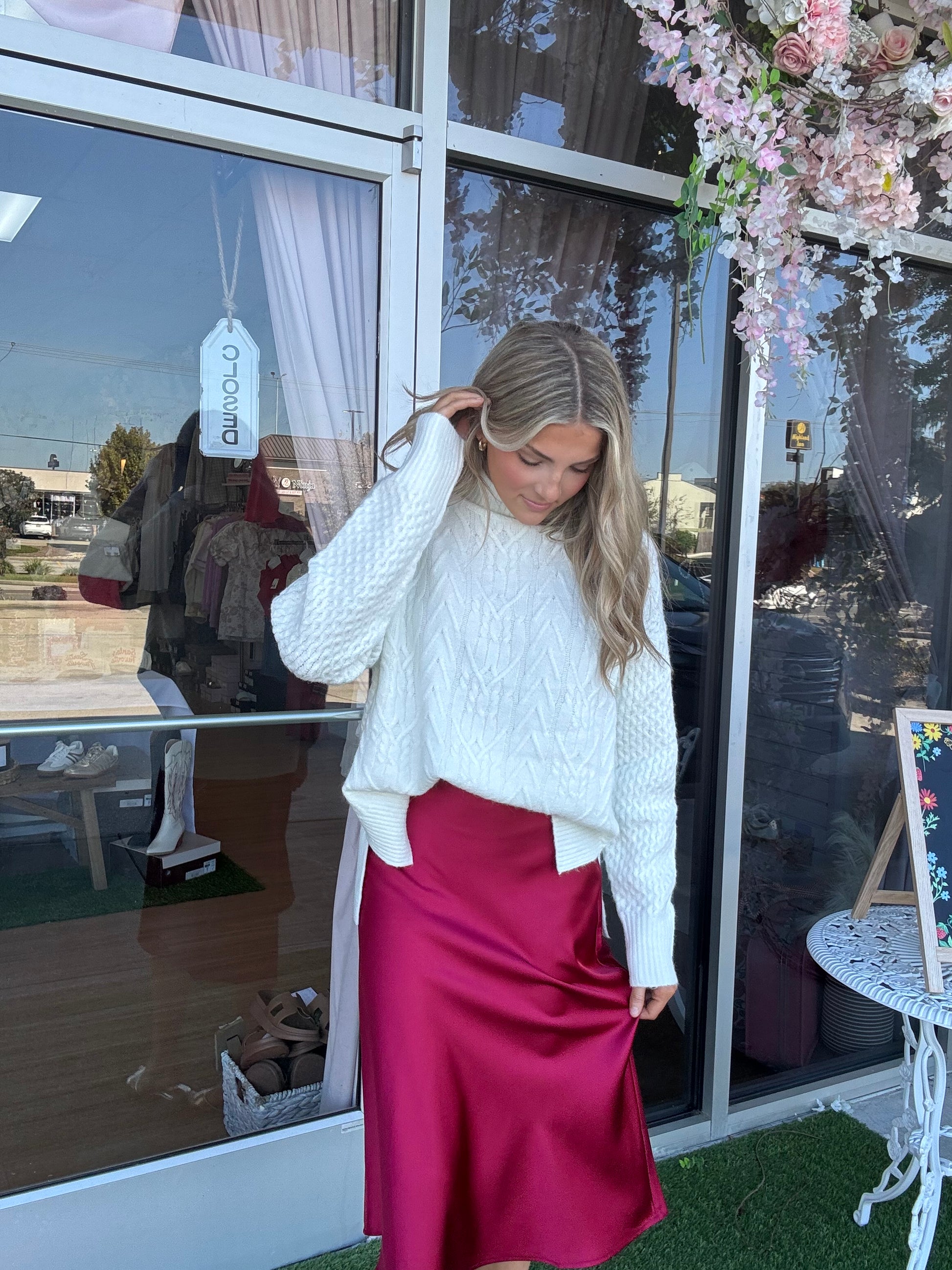 Red Satin Midi Skirt with elastic waistband and back zipper
